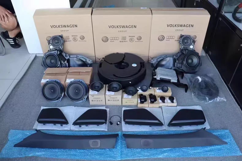 Audi A6L C8 (2019-2026+) Modelleriyle Uyumlu Bang & Olufsen (B&O) Premium Ses Sistemi, standart ses sistemini yüksek sadakatli (Hi-Fi) bir ses deneyimiyle değiştirmek için tasarlanmış kapsamlı bir donanım paketidir. Görseldeki bu profesyonel kit; kristal netliğinde ses çıkışı sağlayan çok kanallı dijital amfi, stepne yuvasına tam oturan güçlü merkezi subwoofer, ön göğüs ve kapılar için yüksek/orta frekanslı hoparlörler ile karakteristik “Bang & Olufsen” logolu metalik ızgara kapaklarını içermektedir. Toplamda 16 adede kadar hoparlörü destekleyen bu sistem, Audi’nin 3D ses teknolojisi sayesinde her yolcuya dengeli ve derinlikli bir akustik sağlar. Orijinal Volkswagen Group (VAG) parçalarından oluşan set, aracın multimedya (MMI) sistemiyle tam entegre çalışarak dijital ekolayzır ayarlarının doğrudan ekran üzerinden yönetilmesine olanak tanır. Yüksek kaliteli kablo tesisatı ve montaj braketleri ile birlikte sunulan bu sistem, kabin içindeki lüks hissiyatını en üst düzeye çıkarır.