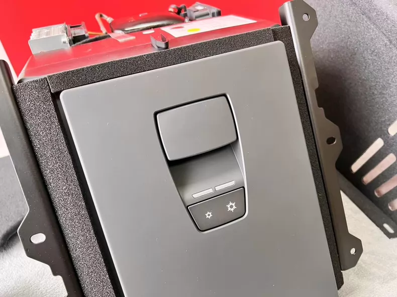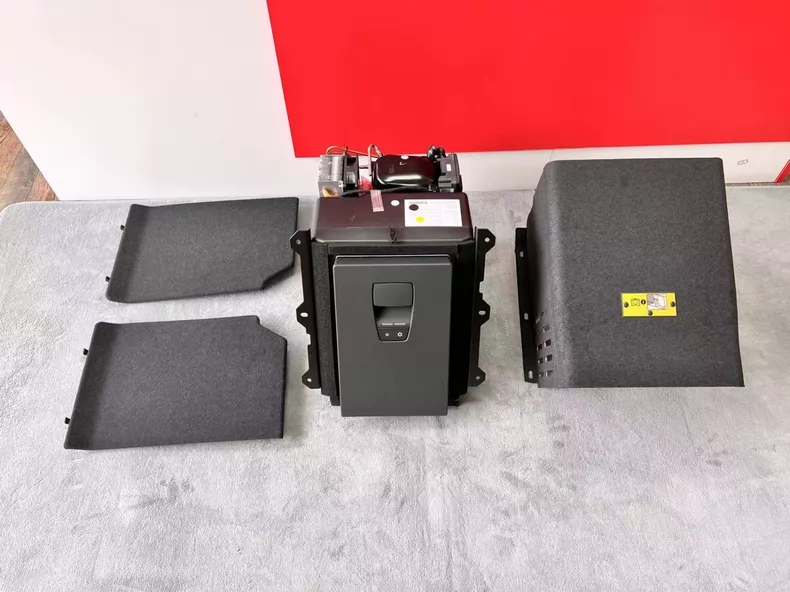 Audi A8, A8L ve S8 Serisi Orijinal Arka Buzdolabı (Cooler Box), aracın VIP arka yaşam alanını tamamlayan, lüks ve fonksiyonelliği bir arada sunan bir donanım yükseltmesidir. Arka koltukların orta kısmındaki bölmeye kusursuzca oturan bu ünite, sürüş sırasında içeceklerin ve atıştırmalıkların taze kalmasını sağlayan gelişmiş bir soğutma mekanizmasına sahiptir. Görselde görülen ön panelde, soğutma performansını ayarlamaya yarayan iki kademeli kontrol butonu (kar tanesi sembolleri) yer almaktadır. Şık antrasit/gri kaplaması ve Audi’nin iç mekan kalitesine uygun malzeme yapısıyla dikkat çeken bu buzdolabı, ihtiyaç duyulmadığında yerinden kolayca çıkarılarak bagaj hacminin tekrar kazanılmasına olanak tanır. Genellikle 2 veya 3 adet 0.75 litrelik şişe kapasitesine sahip olan bu sistem, sessiz çalışma teknolojisi sayesinde kabin içindeki huzurlu atmosferi bozmadan üst düzey konfor sunar.
